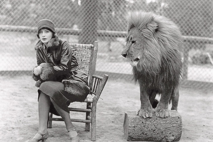 ▼葛麗泰嘉寶 (Greta Garbo) 旁邊的獅子,就是電影公司米高梅 (Metro Goldwyn Mayer) 的開場獅子。