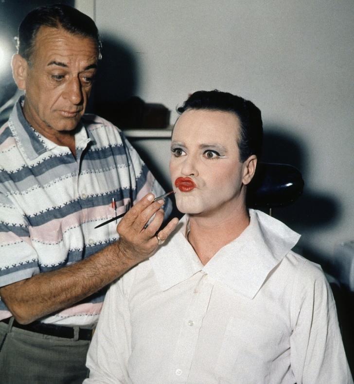 ▼傑克李蒙 (Jack Lemmon) 正在後台化妝。
