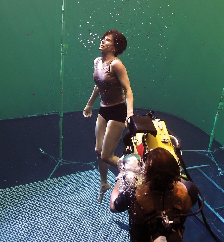 ▼《地心引力》:珊卓布拉克 (Sandra Bullock) 在水下拍攝。