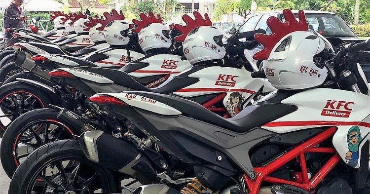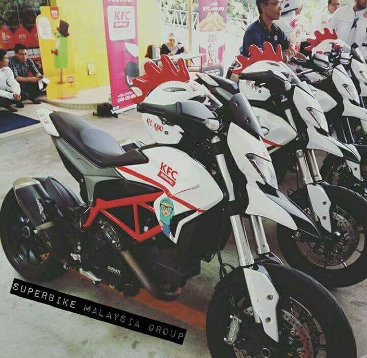 每次路過肯德基,都能看到外面整齊排列的外賣車輛。世界上大部分地方的肯德基外賣車輛都是小摩托、電動車或小汽車,但馬來西亞的肯德基卻獨樹一幟,他們的送餐交通工具竟然是義大利知名重機品牌杜卡迪(Ducati)的Hypermotard 939。