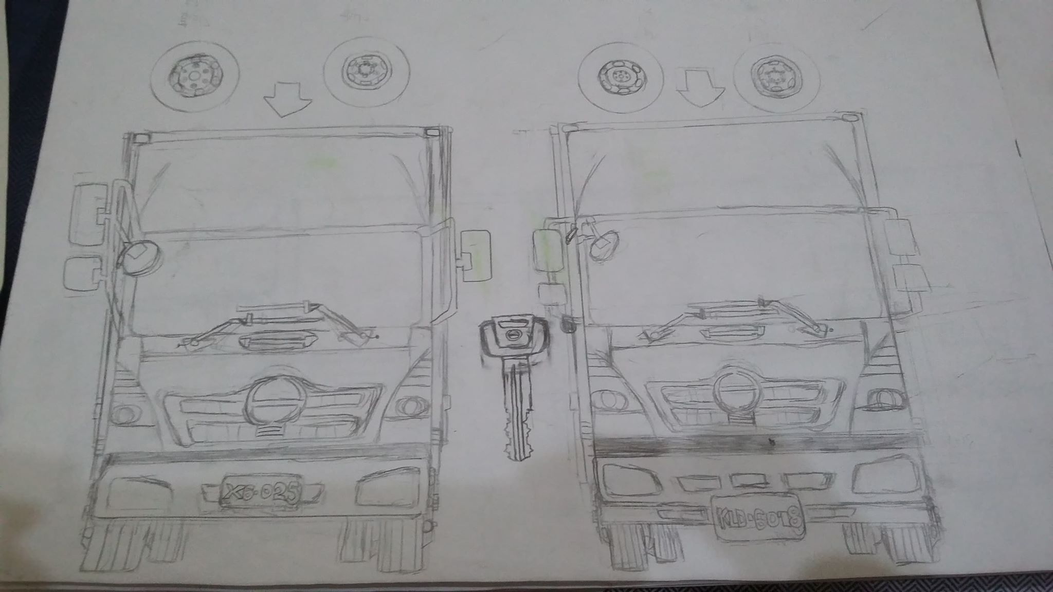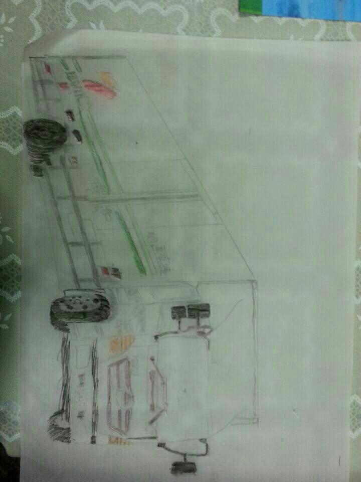 ▼仔細看他的作品,完美的將便利商店物流車的樣子用鉛筆素描了出來,可見他的結構感是非常好的!