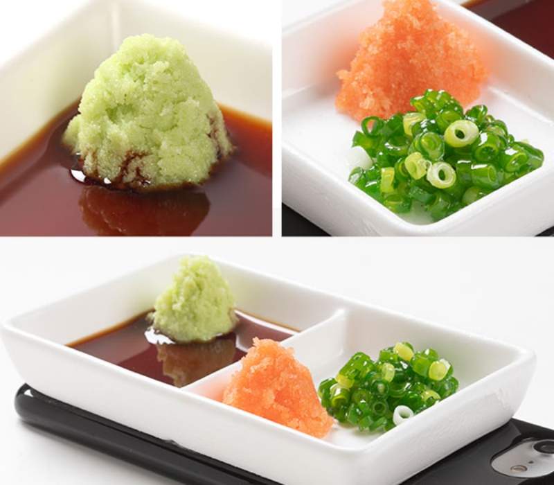 ▼這款調味盤手機殼有兩格,一格是芥末和醬油,另外一格是蔥花和蘿蔔泥。