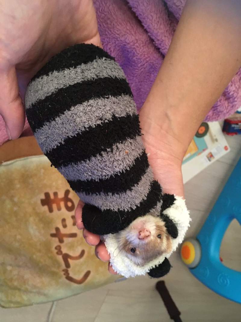 咻~小雪貂鑽進毛毛襪不要出來惹 主人笑翻:之前還給我鑽進尿布