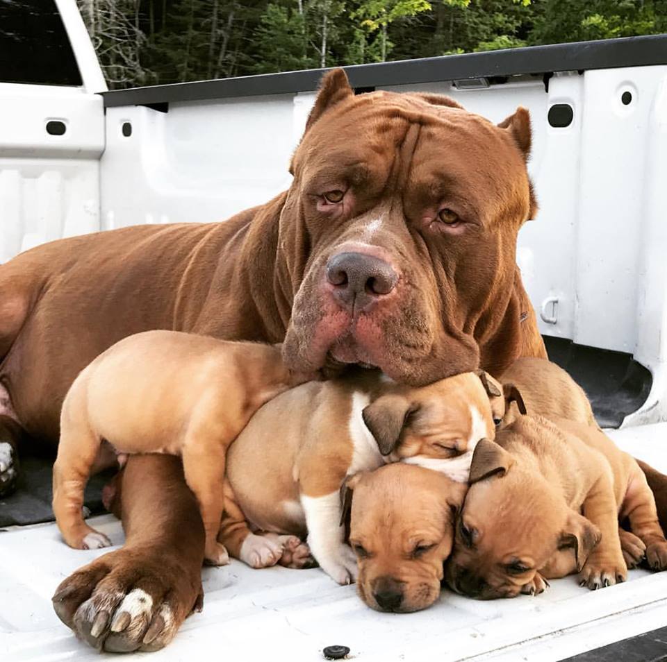 ▼主人麗莎說,浩克是一個好爸爸,牠很喜歡陪伴自己的小寶寶們。每當浩克看到孩子,總是會自然而然的趴下來,輕柔地舔舐著並守護著牠們。