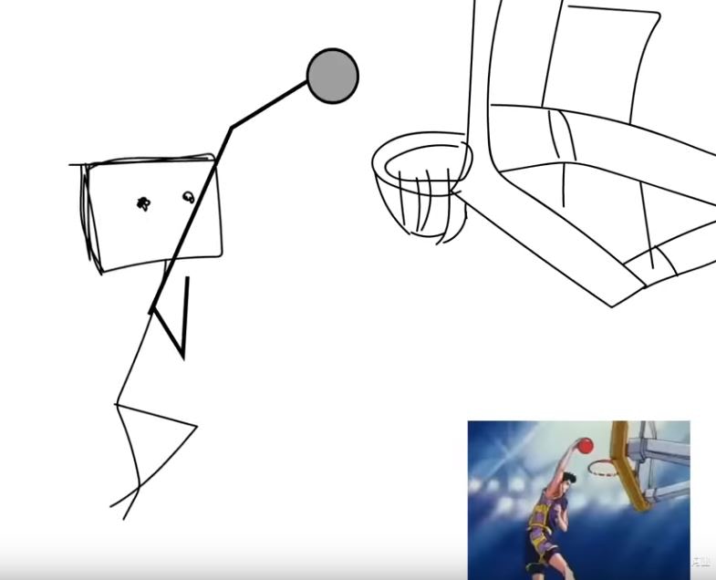 ▼全長1分41秒的片段,全部都是火柴人。表情十足的它們,模仿着湘北籃球隊的主角們,而MV影片的右下方,則有原創畫面做對比,否則鬼才知道哪個火柴人代表的是誰啦!XD