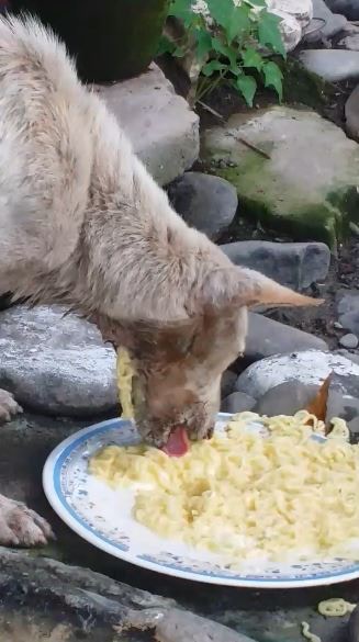 2018年12月13日許多流浪狗都會遭到有心人士的不友善對待,可是能否不要使用那麼沒人性的方式來懲罰牠們呢?一名菲律賓網友在網路上發現這隻可憐的流浪狗在覓食,於是好心端出了一碗麵來餵牠,沒想到牠一邊吃麵,麵條一邊從牠的喉嚨流了出來,畫面實在令人心碎。