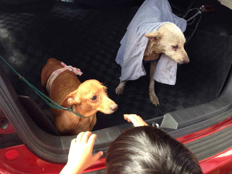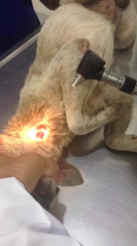 ▼網友推測這隻狗狗可能是從屠宰場逃脫的,於心不忍之下將牠帶往動物醫院接受治療。