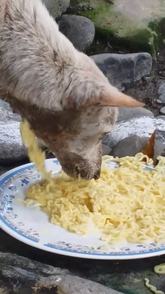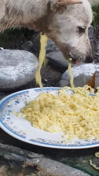 浪浪猛吃麵卻永遠吃不飽 網友淚崩:牠的喉嚨...QQ