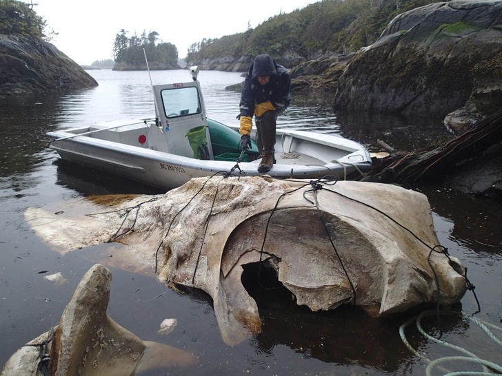 ▼加拿大的海岸旁發現的藍鯨骨頭。