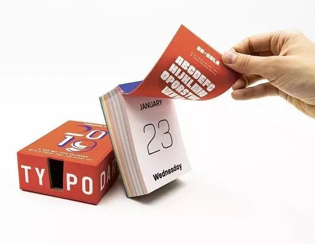 ▼《字體日曆》:來自德國的「Typodarium」字體日曆,是一款非常受到設計師喜愛的作品。12種不同顏色的雙面印刷,讓我們能夠從每天的日常中,啟發出全新的靈感。每一頁日曆都對應著完全不同的字體,就像是一本活生生的大型字體字典。更了不起的是,每張紙的背後,還介紹了字體的來源與範例呢!