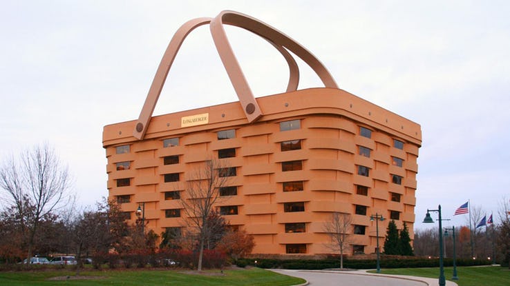 這是The Longaberger company創辦人David Longaberger,花3200萬美元蓋的驚奇大樓。外觀是為了向公司最暢銷的產品致敬。