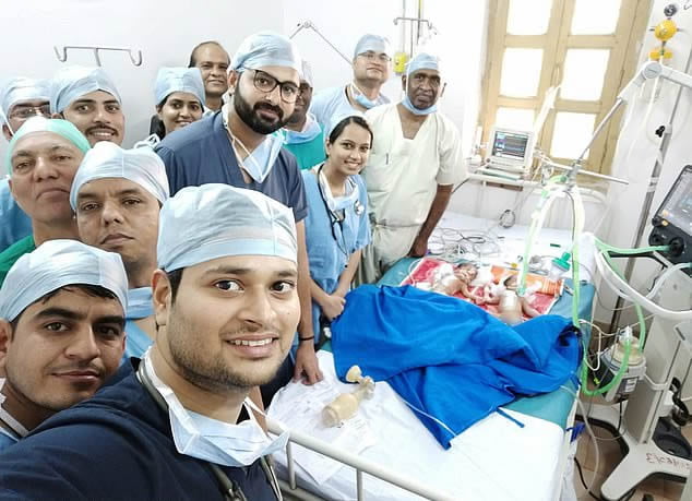 ▼醫院的Vaibhav Pandey博士說:「這是我們醫院做過的最罕見的手術之一,很有挑戰性。最後這兩個女嬰成功獲救,我們都很高興。」