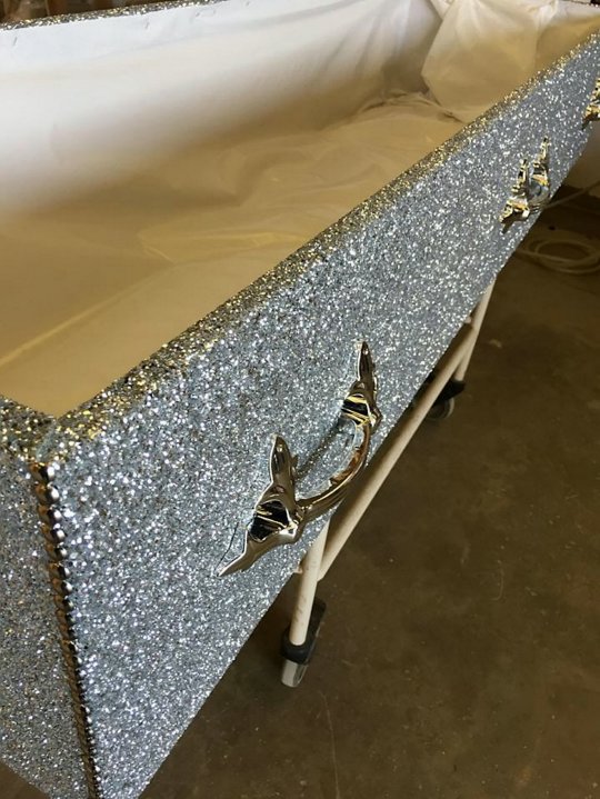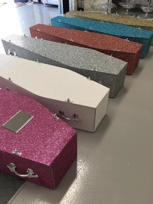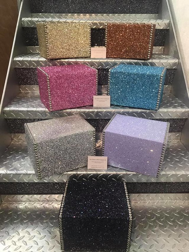 與傳統的棺材、骨灰盒不同,Glitter公司生產的棺材、骨灰盒非常華麗,對於那些想在人生最後時刻都blingbling的人來說,應該是不錯的選擇吧。