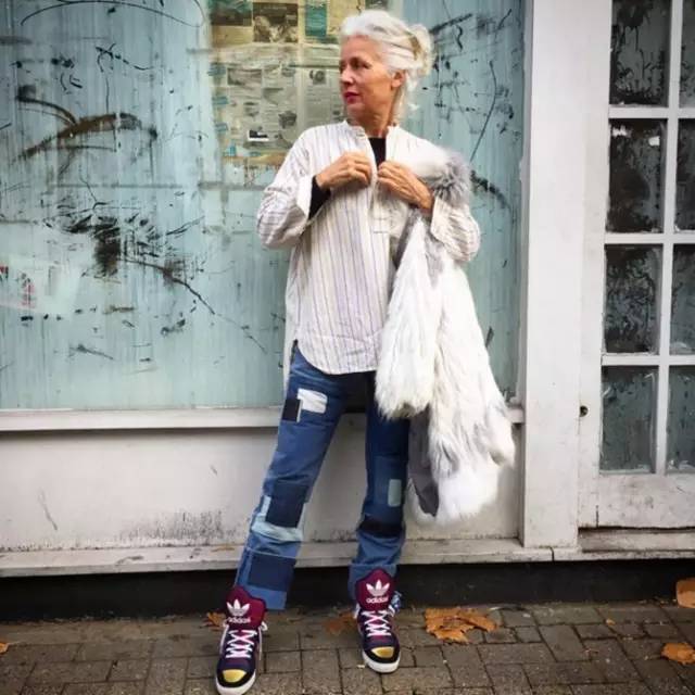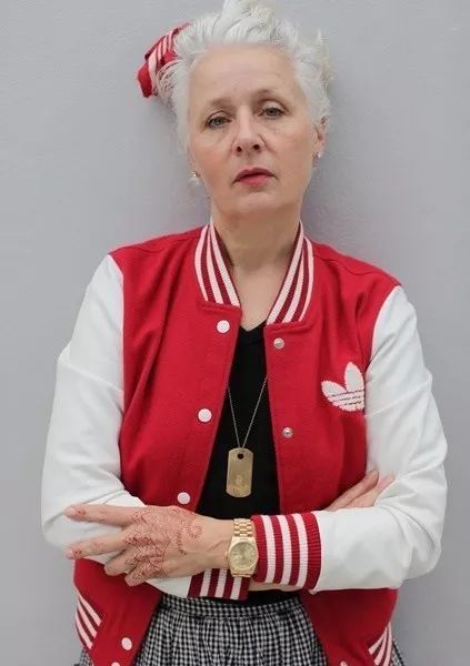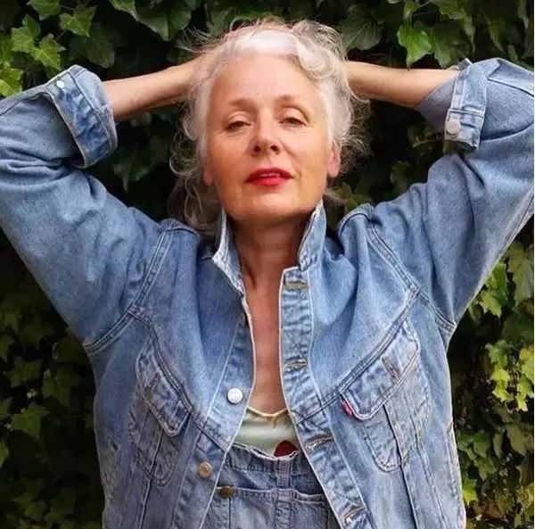 ▼牛仔夾克配上紅唇銀髮,這看似簡單的搭配卻很有韻味,簡直美得不像話。