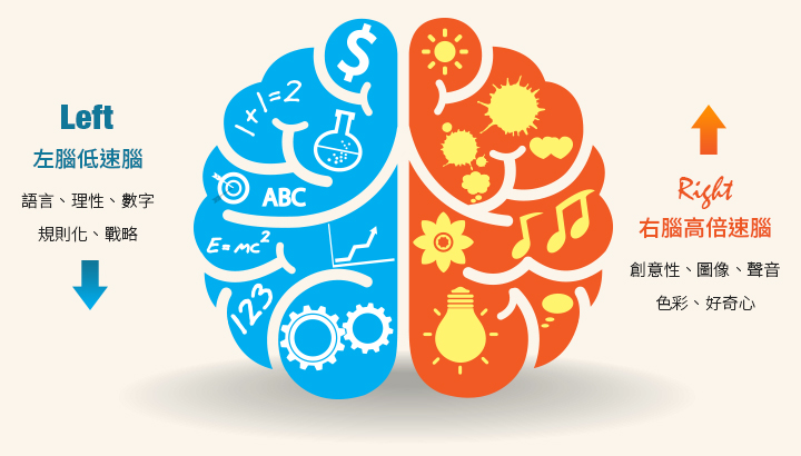 ▼我們的左右腦並非獨立運作,在一般正常的情況下,都會互相交流、牽制和影響。譬如訓練右腦的同時,也一定會刺激到左腦,任何訓練都只能加強潛能開發,無法控制或關閉其中一個區塊。在思考模式和人格特性上,也會出現部分重疊,這些都是屬於正常的現象。