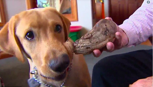 ▼直到這天,Scout不知又從院子裡挖出了一個什麼「新玩具」?主人Kirk當初認為,那只是一塊普通的木頭或是石頭。但Scout似乎對這個此物特別喜歡,甚至當作寶貝一樣,連續帶在身邊好幾天。所以,主人就決定仔細看看,到底是什麽讓他家的寶貝毛孩那麽着迷?