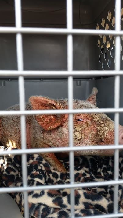 ▼隨後工作人員聯繫了Sale,Sale表示願意幫助這隻小豬,還說「這個男子很可能是小豬的主人,由於沒有照顧好小豬又不想負責,只好謊稱是自己撿到的。這隻幼小的豬崽一定生活在非常擁擠骯髒惡環境中,才患上如此嚴重的獸疥癬」。