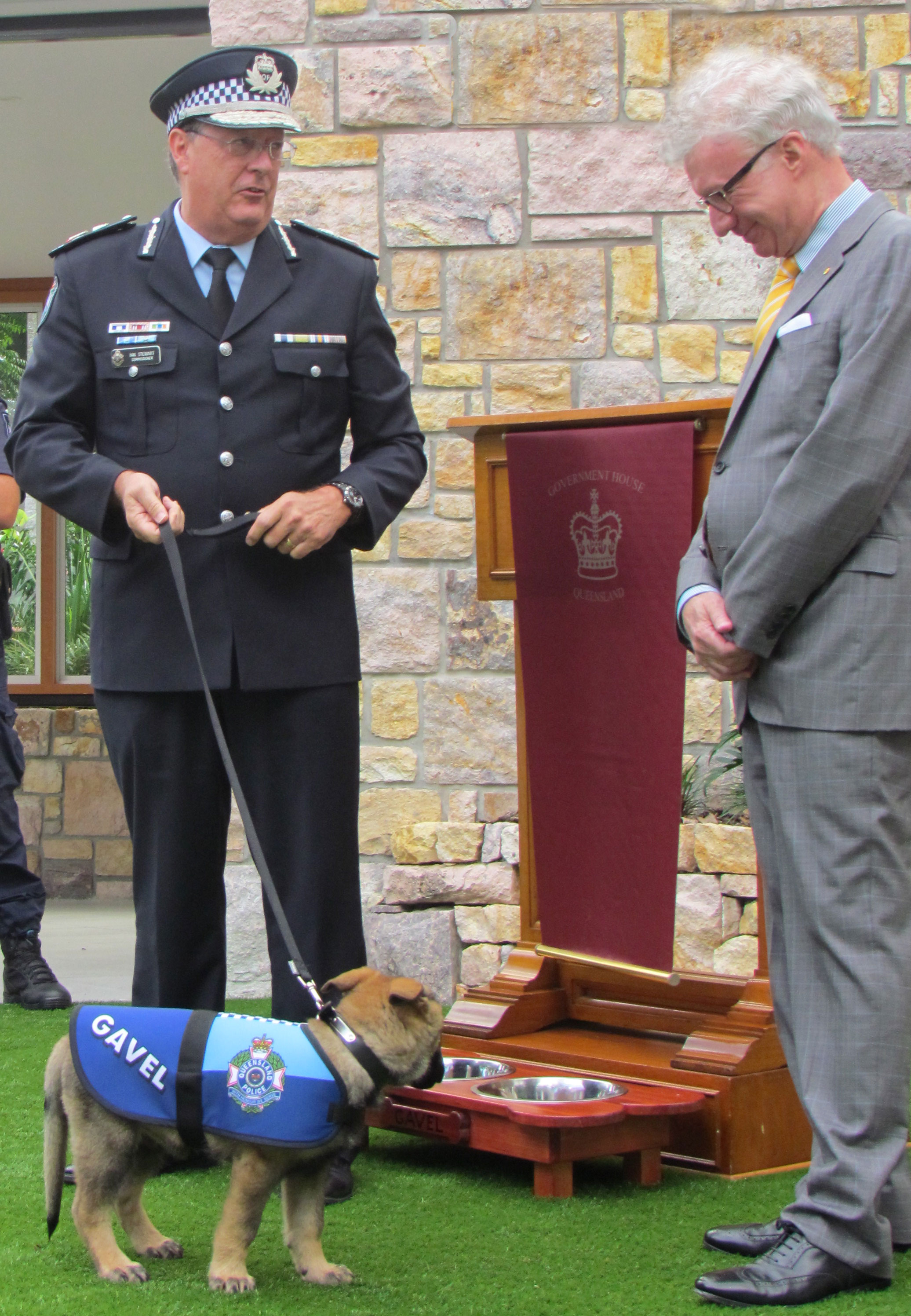 ▼在當時的警犬介紹記者會上,昆士蘭州的州長還親自接見Gavel。