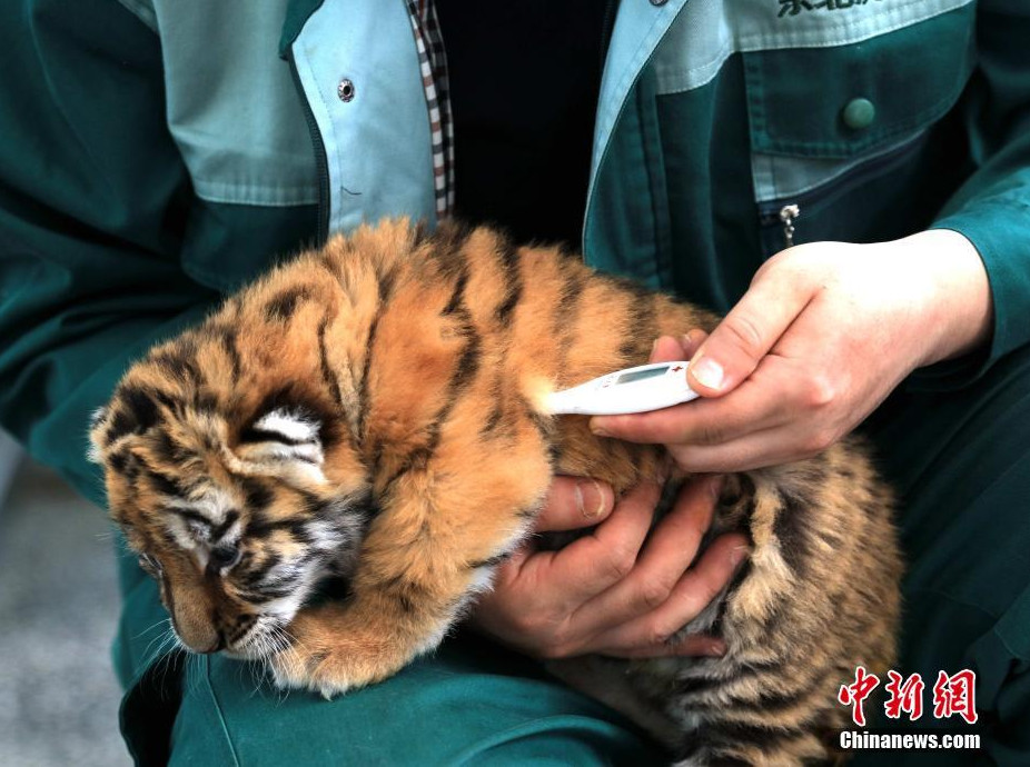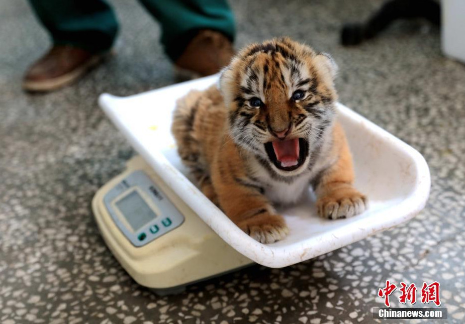 ▼飼養員在給虎寶寶細心的喂奶、量體溫體重,同時用照片記錄下了牠們可愛的動作表情。