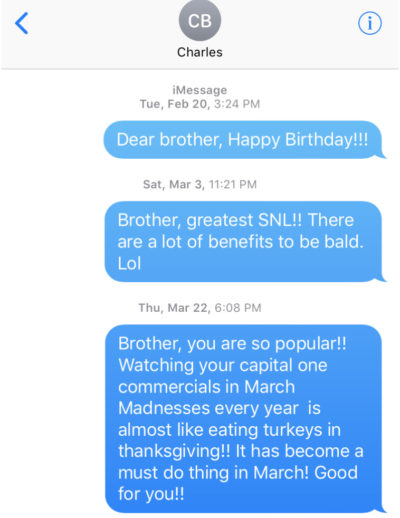 他仍在我們社區慶祝農曆年的聚會中,用他和巴克利的照片做了投影片。我問我爸,他到底怎麼跟巴克利當成朋友的,他說:「我們對很多事情意見相同,你知道巴克利在70年代的阿拉巴馬州長大,他爸很小就離開他,他被媽媽跟奶奶扶養長大。他媽媽和奶奶為了養家,只能去當清潔工。他小時候很苦,但因為他的專業而受到敬重。」