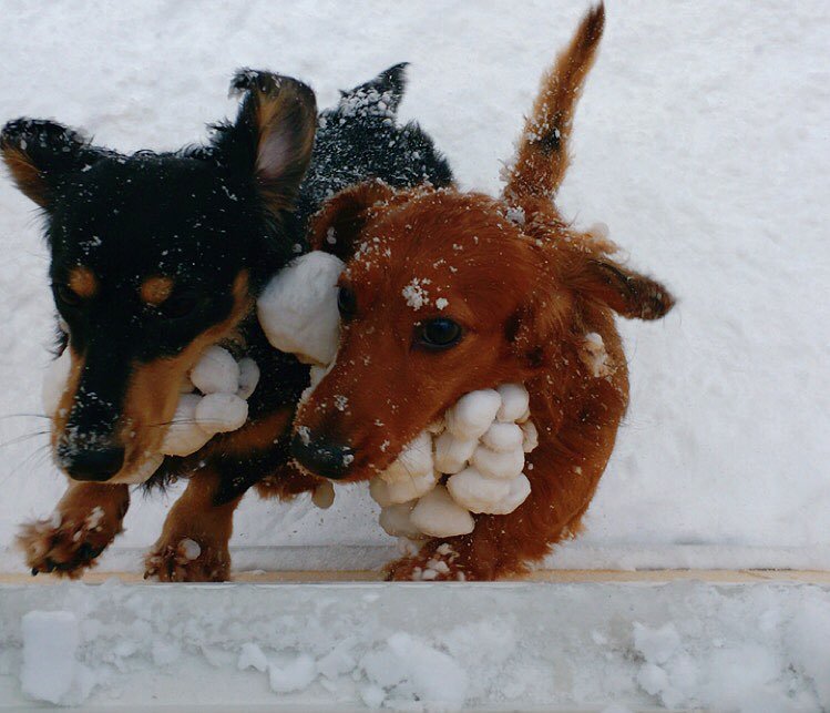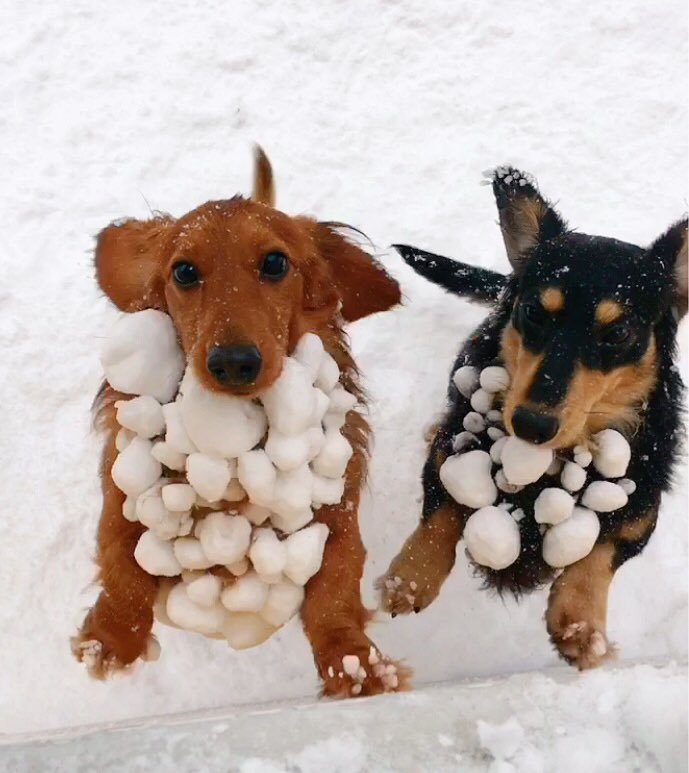 看到這些大大小小的雪團不用擔心,這是狗狗們玩得開心的證據,主人只要幫牠們摘下來就好了。看來這兩隻狗狗在雪地中瘋玩了很久,否則不會變成這樣。軟綿綿的雪地就是狗狗們的天堂,看到牠們在雪地中撒歡的模樣,感覺世界都美好起來了。