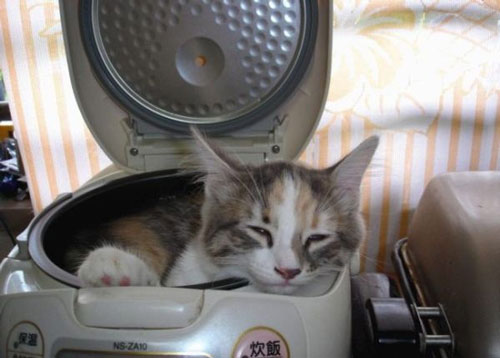 ▼天氣變冷了沒關係,睡在電鍋裡可以保暖?!