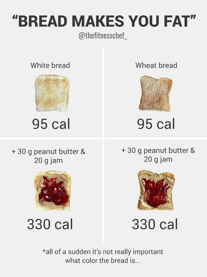 ▼21.吃麵包會變胖?麵包本身的熱量不算特別高,加上果醬、花生醬之類的話,就非常可怕了。
