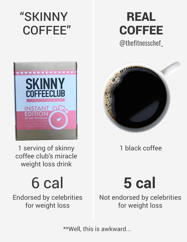 ▼8.名人代言的瘦身咖啡:6大卡;普通黑咖啡:5大卡。
