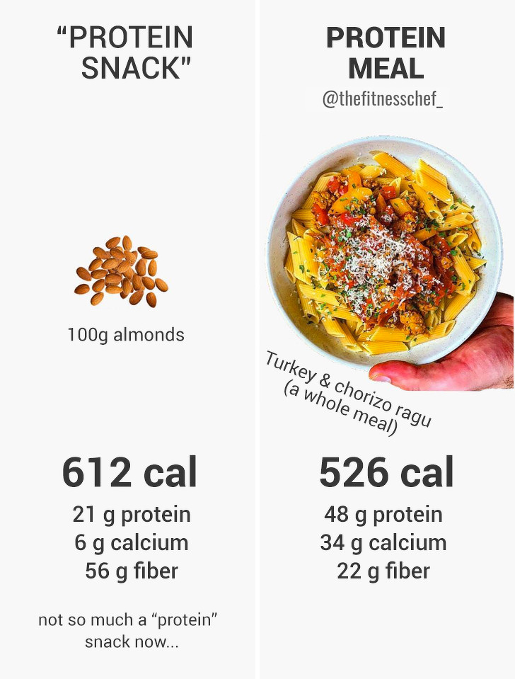 ▼14.高蛋白小零食:100g杏仁含有612大卡,其中包括21g蛋白質、6g鈣、56g纖維;高蛋白飲食:一碗筆管麵含有526大卡,其中包括48g蛋白質、34g鈣、22g纖維。有時候吃的不多,熱量卻很高。
