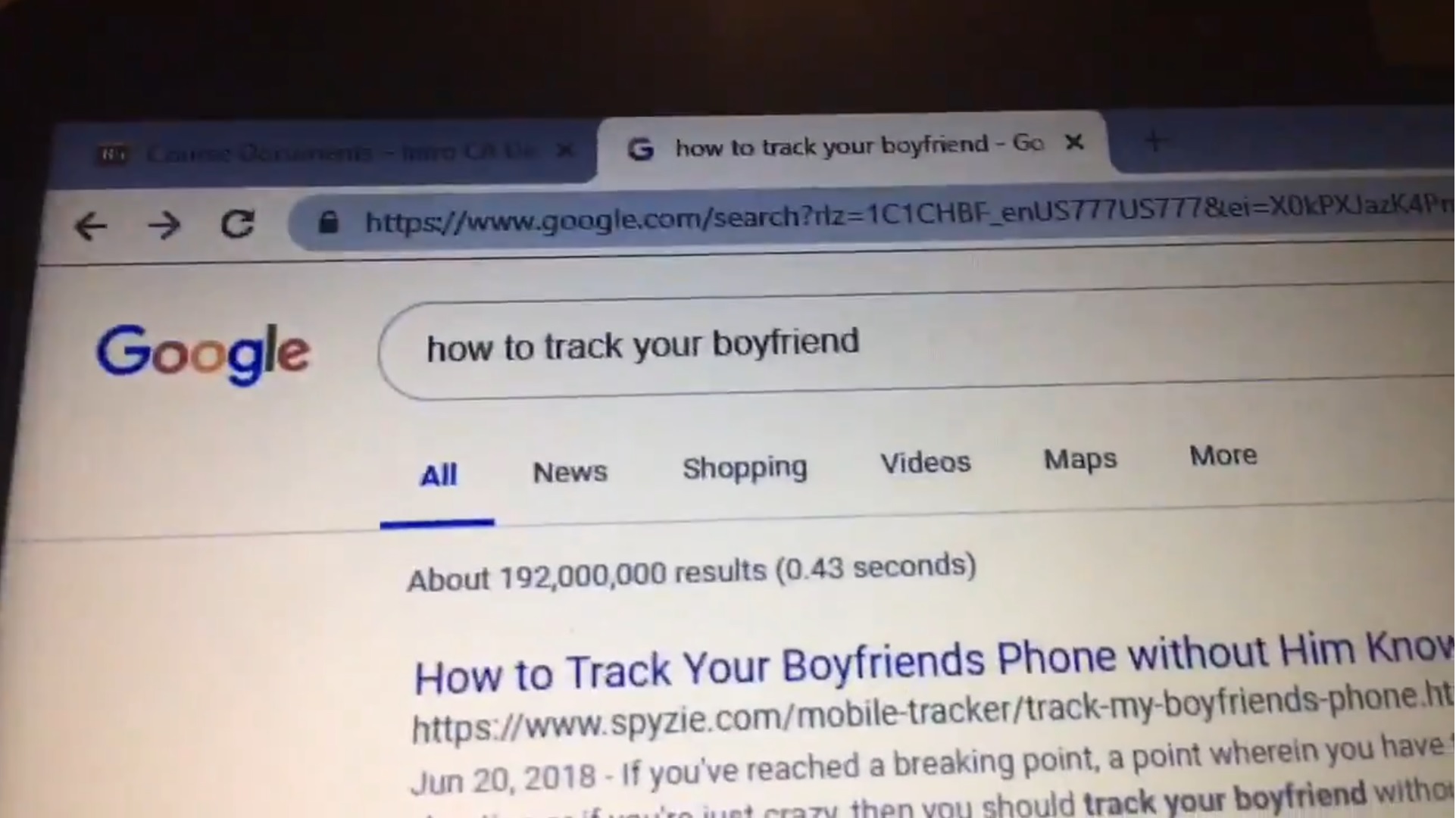 ▼還在搜尋引擎上輸入了:「How to track your boyfriend?」(如何追蹤男友的行跡?) 這一段有夠好笑!XD