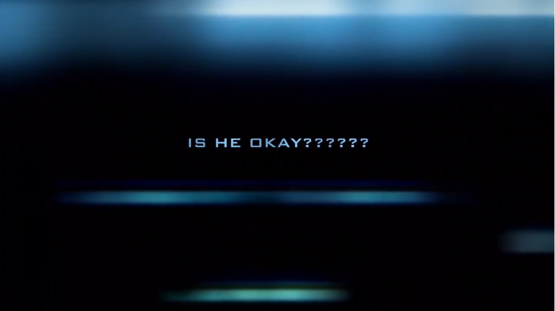 ▼字幕寫著:「IS HE OKAY?????? 」(他還好嗎?) 有種《駭客任務》系列電影的感覺。XD