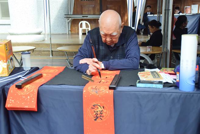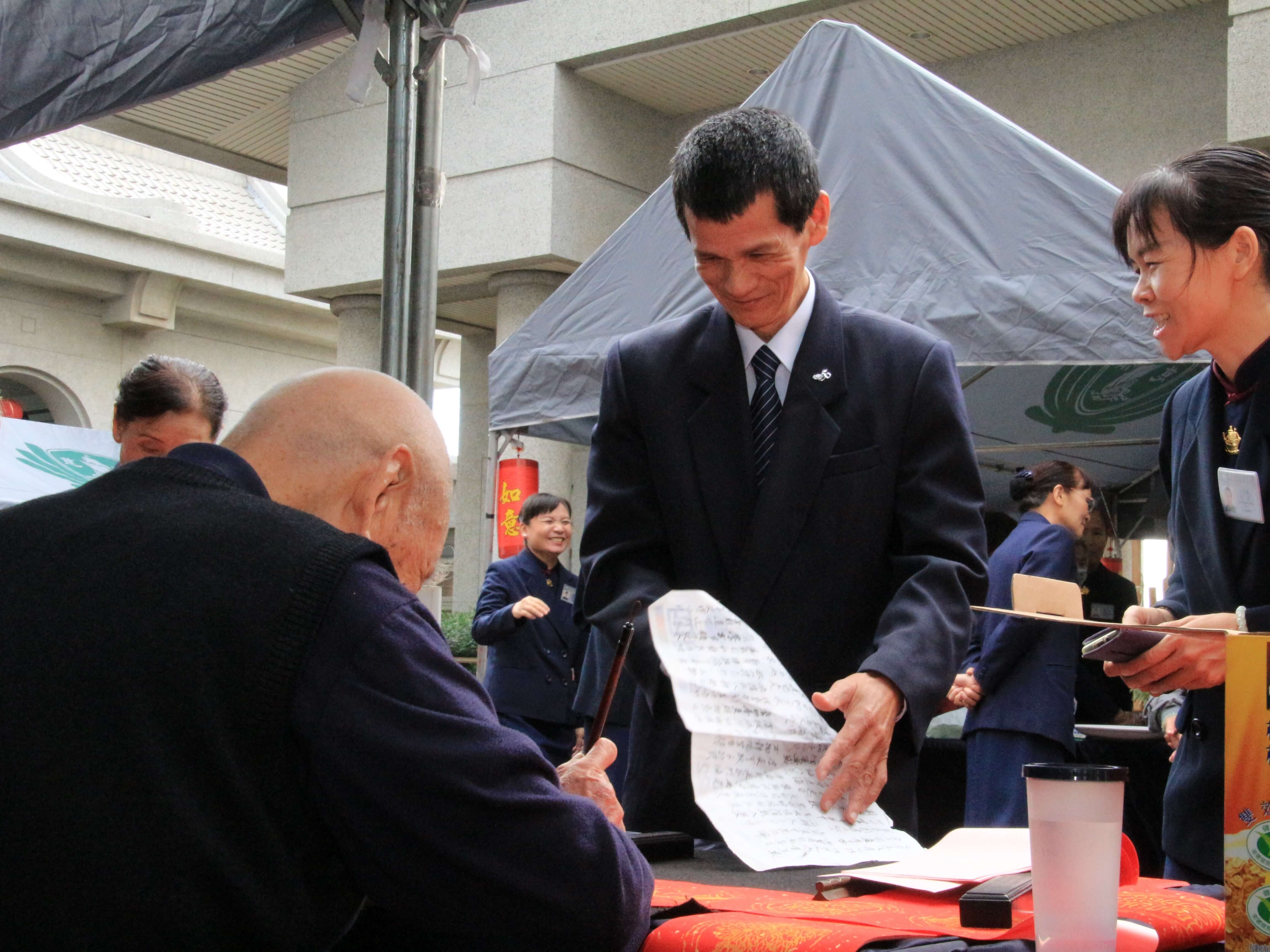 ▼康爺爺恭錄抄寫的《法華經》也非常吸引人。他的字跡工整,看過的人都會忍不住停下腳步欣賞。也因此,每當慈濟有什麼重要活動,康爺爺都會自備紙筆揮毫,出錢又出力讓活動現場更精彩。