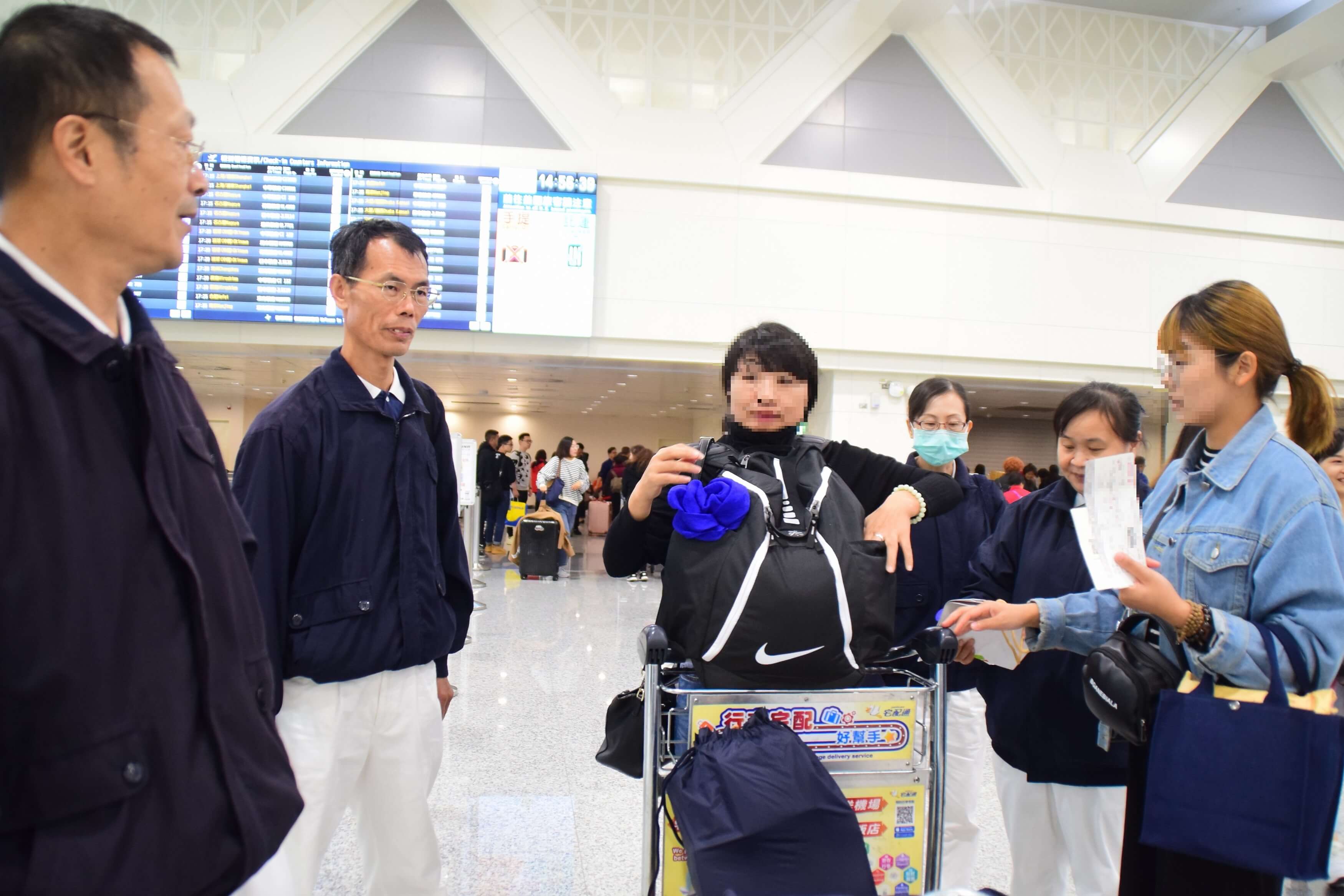 ▼「爺爺,我們要離開榮家了!」、「機場到了,要回家鄉了!」。康爺爺的家屬也泛淚感激慈濟志工的所有幫忙,深深一鞠躬表示,「謝謝您們,在人生地不熟的地方,給我們溫暖,提供交通工具,非常感恩」。