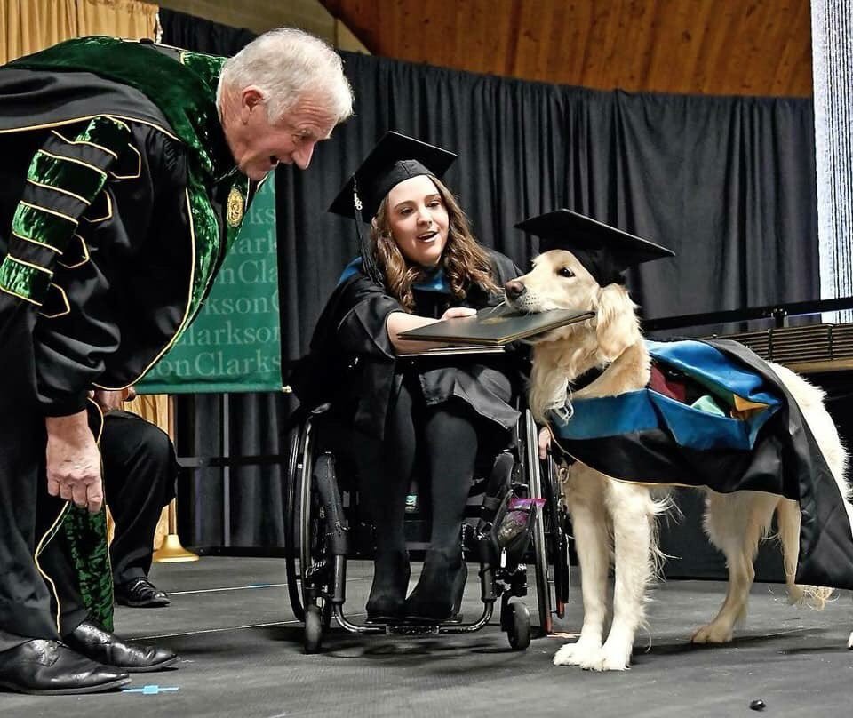 ▼畢業典禮那天,Griffin與主人一樣,戴著畢業帽,穿著畢業服,從校長手中叼過畢業證書,看起來超可愛。Brittany說:「Griffin讓我變得更獨立、更擅長社交,和牠相處我變得更外向,牠不僅是一隻服務犬,也是我最要好的朋友。」