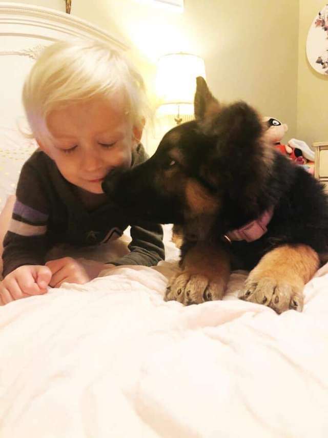 ▼布蘭妮的女兒勞蕾爾(Laurel),是個剛滿三歲、活潑好動的孩子。也許是遺傳到母親天生愛狗的個性,當德國牧羊犬「Wren」來到她們小而巧、但卻溫馨無比的家時,她馬上就像著了迷似的愛上了這隻毛孩。
