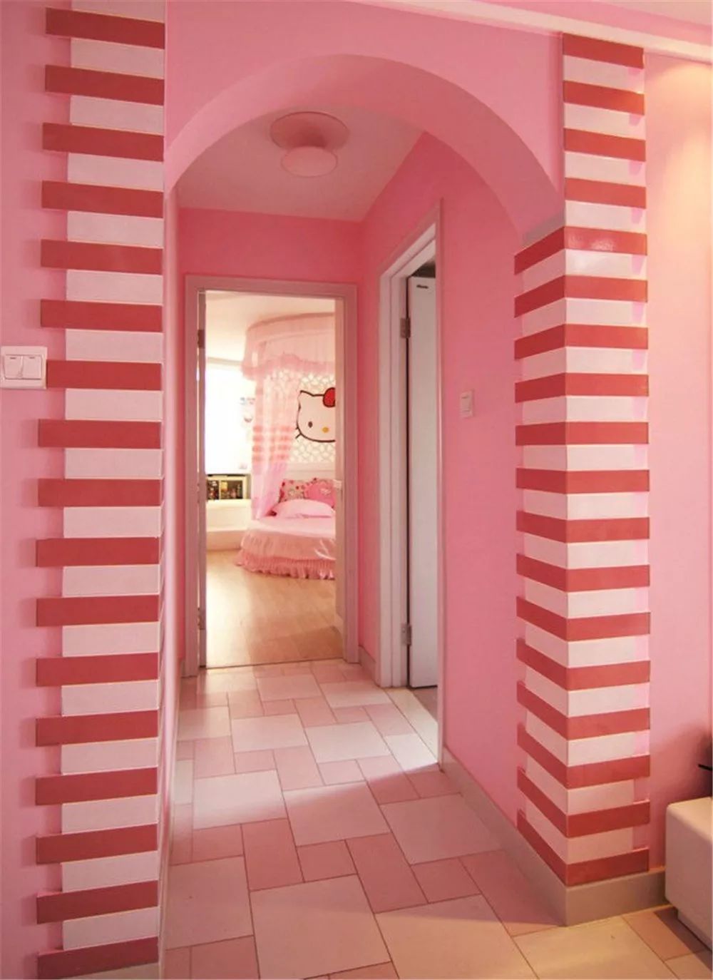 ▼這間房子的牆壁、屋頂是浪漫的粉紅色,大部分家居都是白色的。不過推門而入,最吸睛的還是這個Hello Kitty造型的拱門。是不是非常出彩!