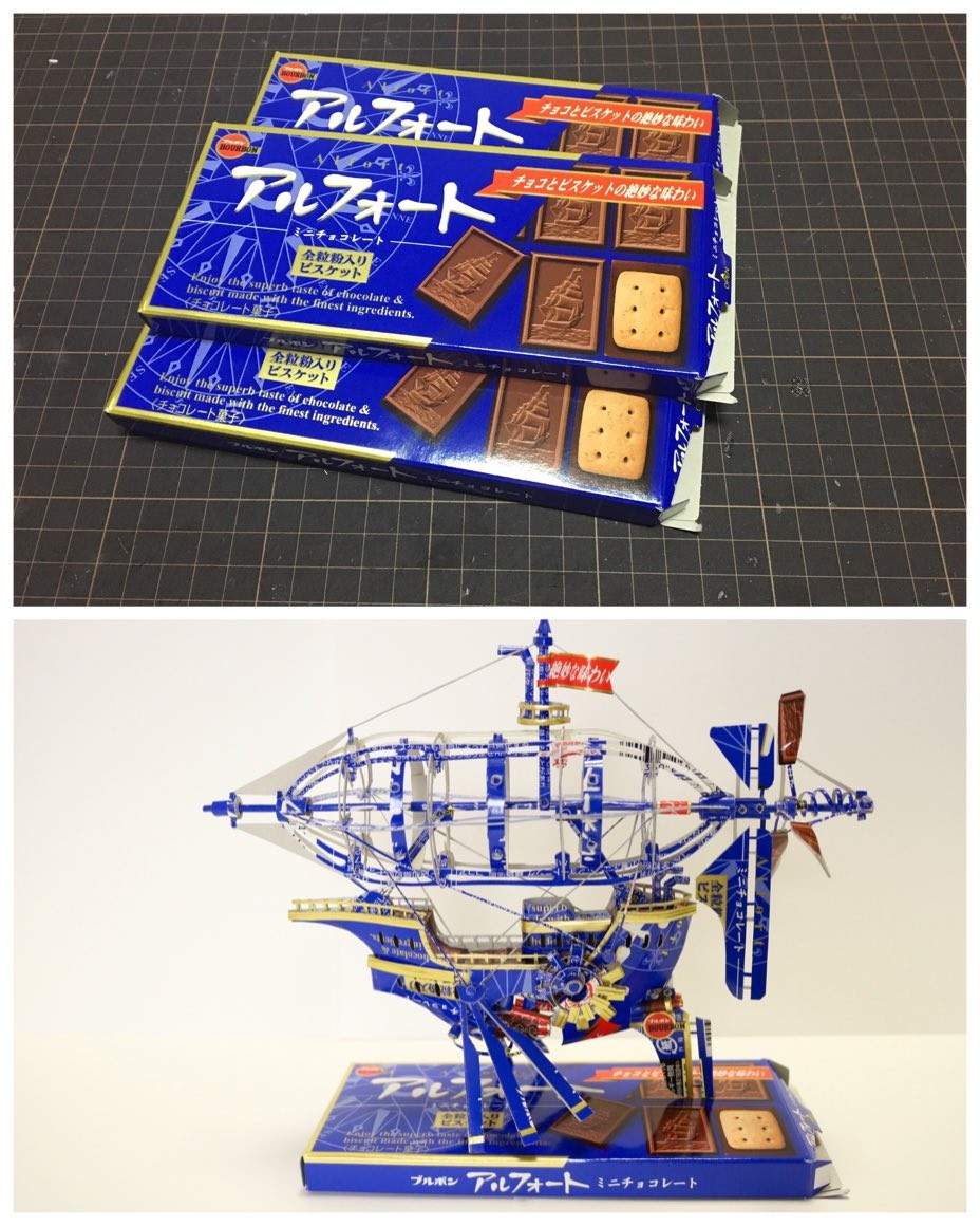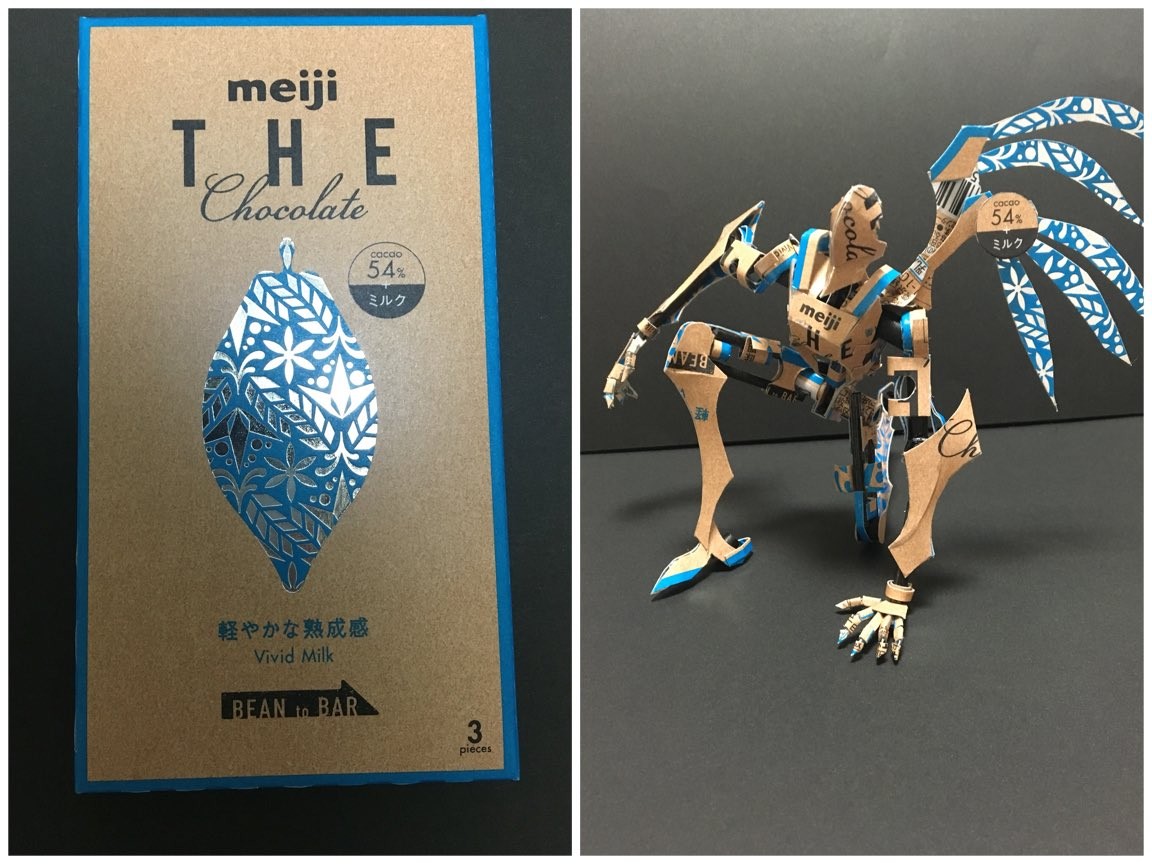 ▼「巧克力紙盒」做成的機甲,滿滿的機械感。