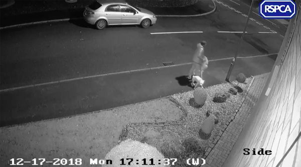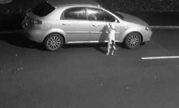 ▼當地監視器拍攝到了這隻斯塔福郡鬥牛㹴被主人遺棄的一幕。監視器顯示,主人將車停在路邊,然後把狗狗牽了下來。狗狗乖乖跟在主人身邊,主人則從後車廂把狗窩拿了出來。