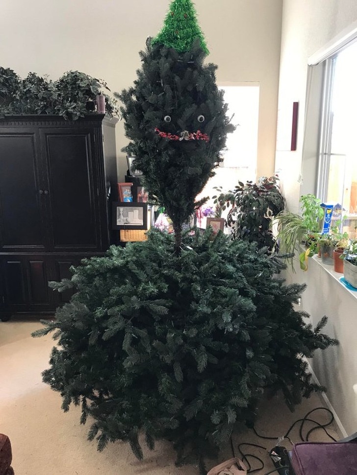 ▼因為無法將燈飾放到屋頂上,於是他想出了這個方式即興發揮!