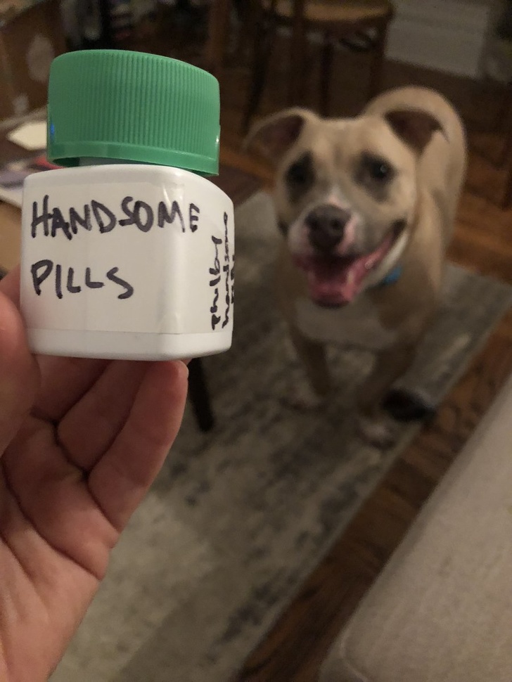 ▼我的狗狗每天都必須吃過敏藥,可是我都騙牠說這是吃了會變帥的藥!