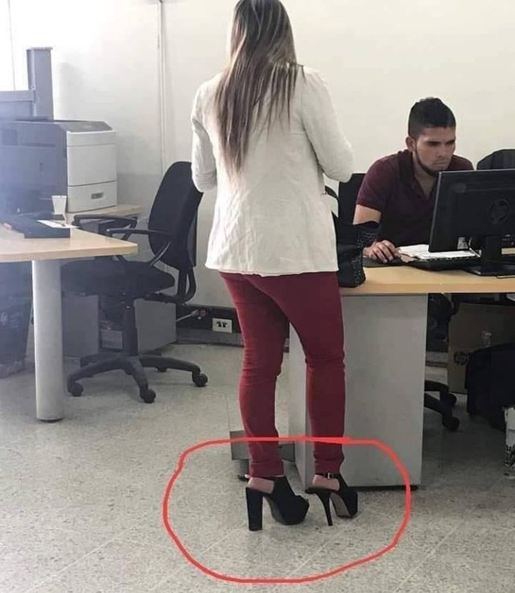 ▼當你的高跟鞋根斷掉了,剛好你又有帶另一雙放在辦公室時: