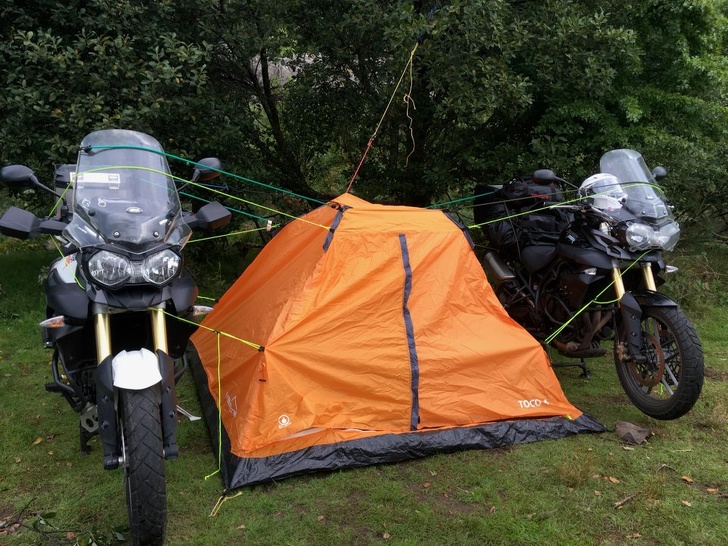 ▼我們帶了帳篷卻忘了帶支撐桿,於是想出了這個方式!