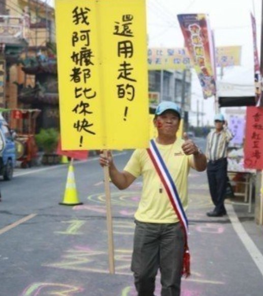 ▼而這個「還用走的!我阿嬤都比你快」的標語,更是有網友開玩笑表示「可惡,真的被激到了!」