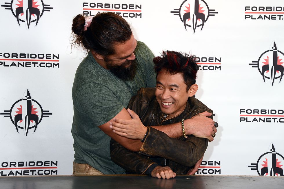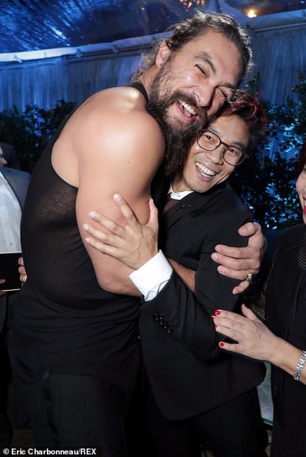 ▼10.熊抱導演:與傑森摩莫亞相比,導演溫子仁顯得比較瘦弱。在洛杉磯的電影首映會上,傑森摩莫亞看到導演後直接把他抱了起來。