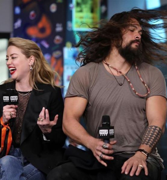 ▼9.在片場很愛鬧:《水行俠》女主角安柏赫德(Amber Heard)接受採訪時說傑森摩莫亞很皮,休息時總是拉著大家一起玩,他還曾偷偷拿走她正在看的書的最後幾頁。其實拍攝《正義聯盟》時,傑森摩莫亞也很愛鬧,讓「神力女超人」蓋兒加朵(Gal Gadot)笑到不行。