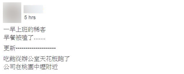 ▼這位發文者最後也補充,這位稀客吃飽後就從辦公室天花板跑了。