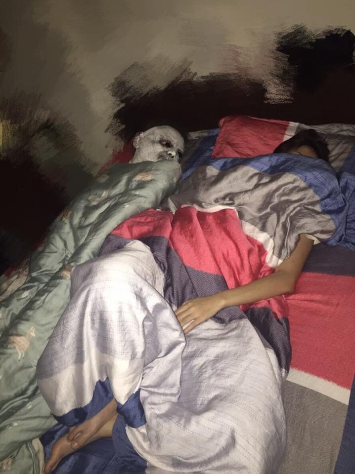 2018年12月28日各位是否有經歷過睡到一半時,突然覺得有人一直望著自己的詭異感覺呢?日前一名女網友就在臉書《爆廢公社》中分享了自己的經歷,原來她在網路上買了一個超恐怖的頭套,原本打算與好友玩電腦遊戲時拿來戴,結果卻被男友用來嚇她,讓她嚇得髒話也脫口而出!