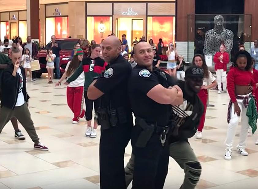 2018年12月29日12月18日,美國佛羅里達州阿文圖拉市(Aventura)的一個舞蹈團體在一間購物中心進行快閃跳舞活動。期間2名警員上前,似乎要阻止舞者。大家本以為快閃活動會草草收場,沒想到警員也加入進去,跟著音樂跳了起來,將現場的氣氛炒得火熱。