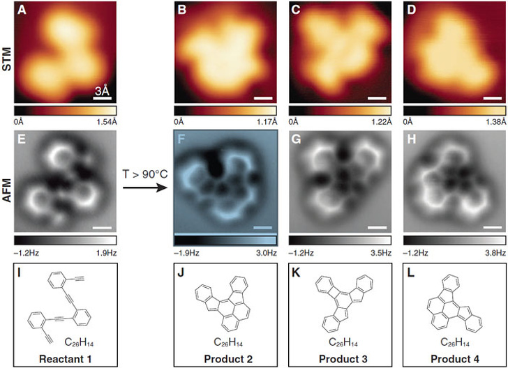 ▼通過原子力顯微鏡看有機化合物,就像書本中的圖一樣。