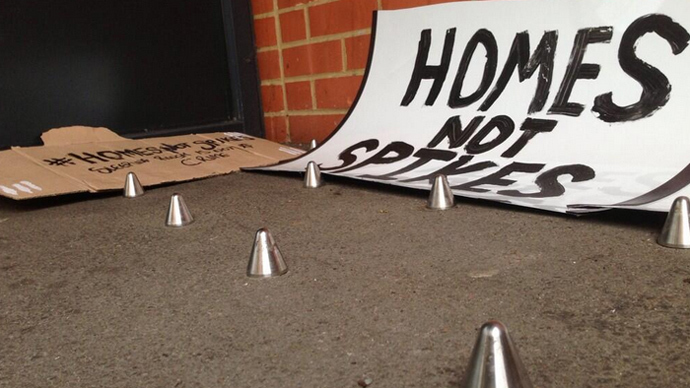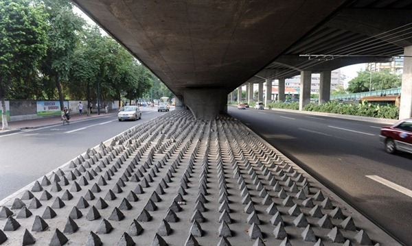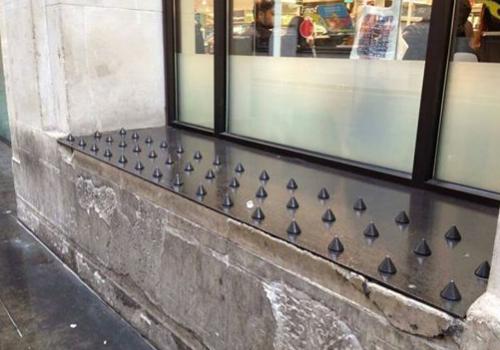 ▼倫敦:角落的地刺,遊民無法躺在地上休息。